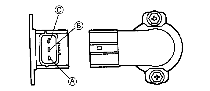 3. Using an ohmmeter, measure the resistance between throttle position sensor terminal A and C.
