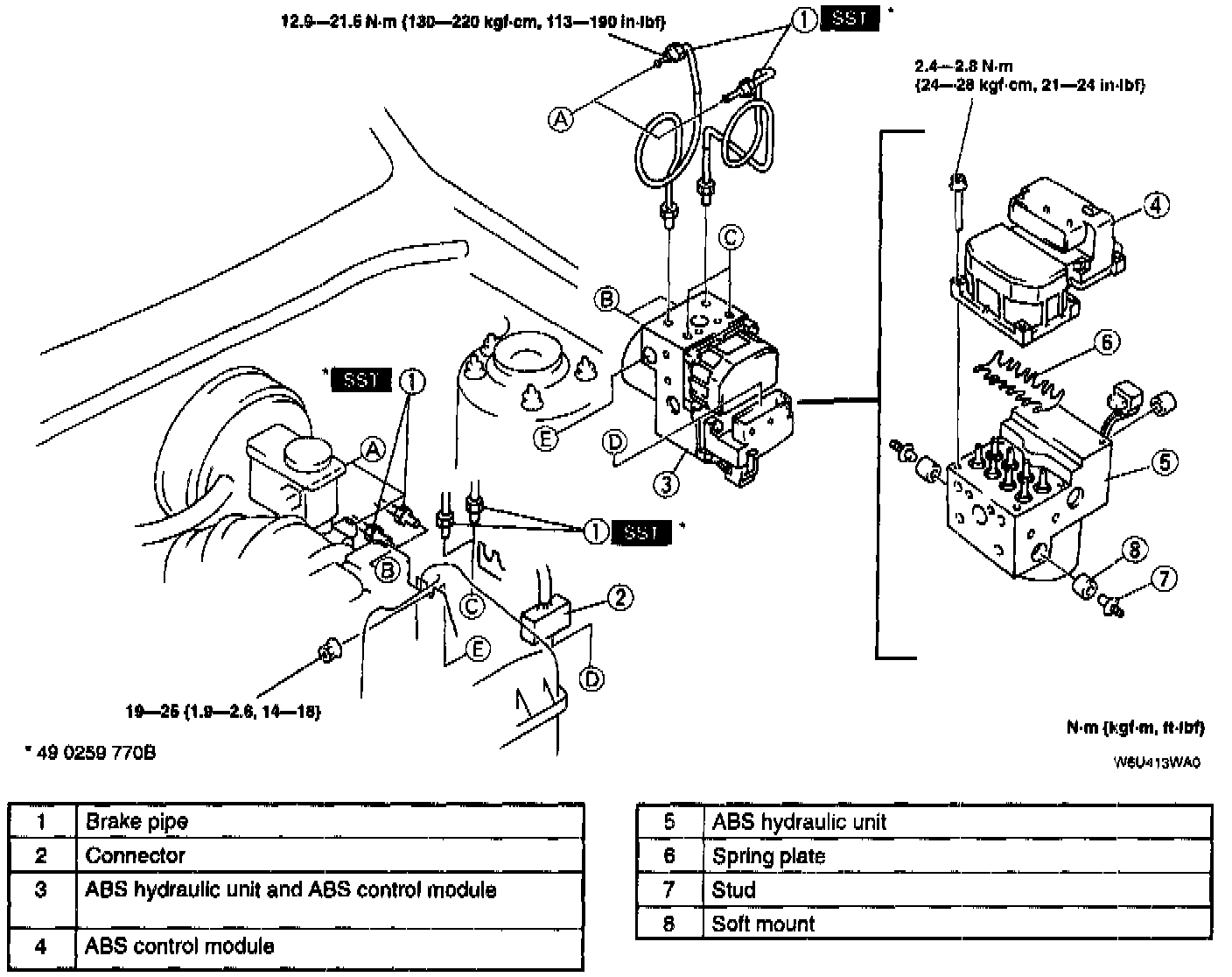 ABS Hydraulic Unit and ABS Control Module Removal/Installation Note (3)