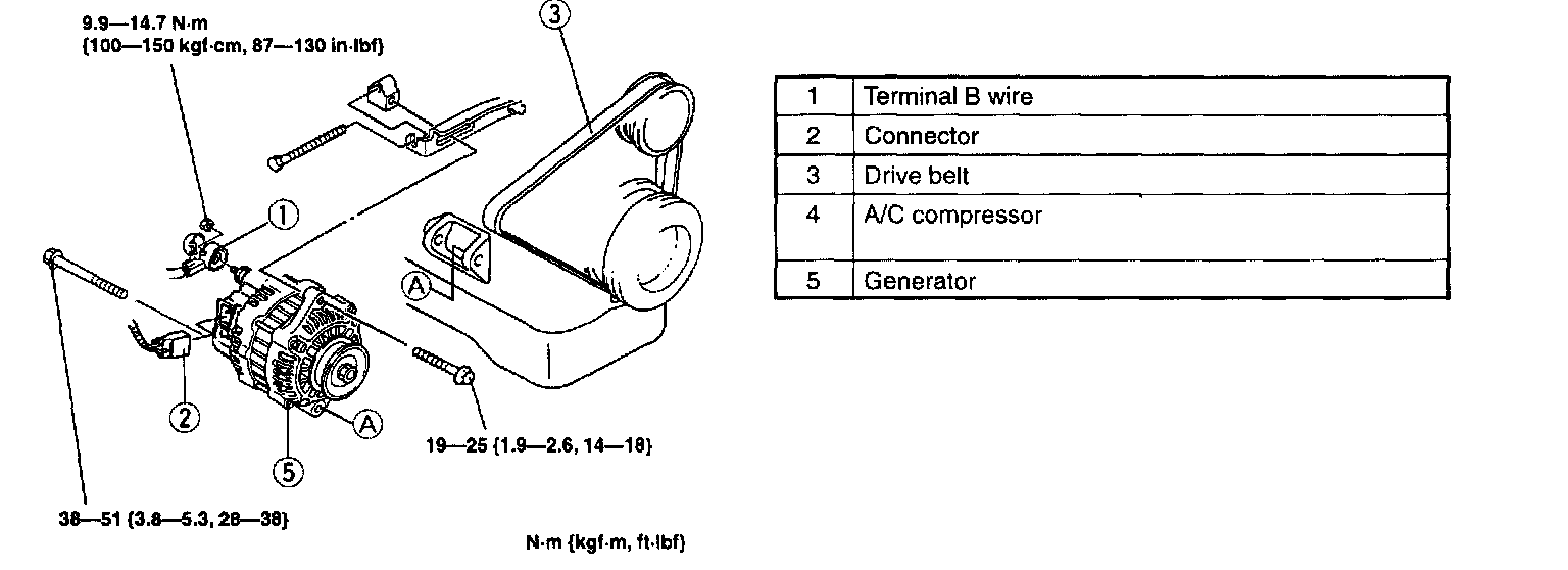 WARNING: When the battery cables are connected, touching the vehicle body with generator terminal B will generate sparks. This can cause personal injury, fire, and damage to the electrical components. Always disconnect the battery before performing the following operation.1. Disconnect the negative battery cable.