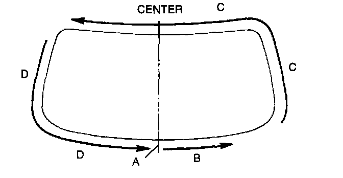 CAUTION: Keep the area free of dirt and grease, and do not touch the surface or the primer may not properly bond to the surface of the glass and body which may cause leaks to occur.