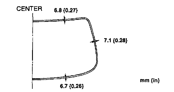 12. Verify that the gap along the upper edge is 6.8 mm {0.27 in}, lower edge is 6.7 mm {0.26 in} and sides edge are 7.1 mm {0.28 in}.