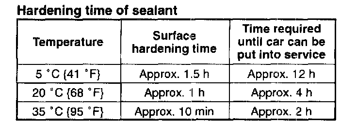 CAUTION: To prevent the sealant from cracking or the glass from being pushed out by air pressure if a door is closed, open all of the windows and leave them open until the sealant has hardened.