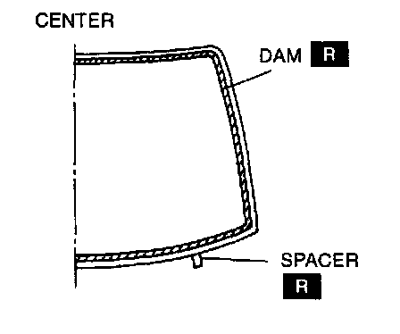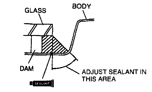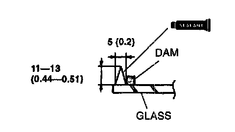 10. Once the primer is dry, apply sealant around the entire circumference to fill the gap between the dam and the edge of the glass with a 11-13 mm {0.44-0.51 in} high 5 mm {0.2 in} wide bead of sealant.