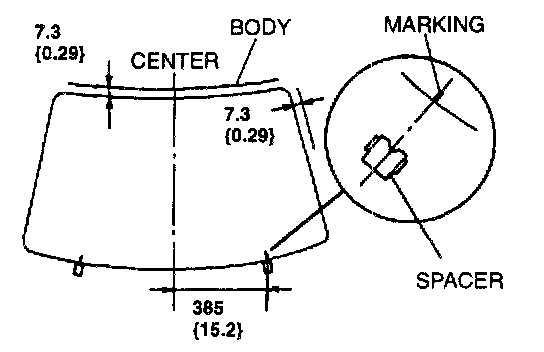 2. Clean and degrease an approximately 50 mm {2.0 in} wide strip around the circumference of the glass and the bonding area on the body.