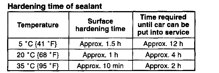 1. Cut away the old sealant by using a razor knife so that 1-2 mm {0.04-0.07 in} thickness of a sealant remains around the circumference of the frame. If all the sealant has come off in any one place, apply some primer after degreasing, and allow it 30 minutes to dry. Then put on new sealant to create a 2 mm {0.08 in} layer.