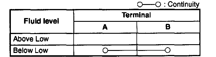 3. Inspect for continuity between the washer fluid-level sensor terminals by using an ohmmeter.