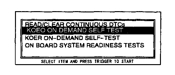 3. Move the cursor to KOEO ON-DEMAND SELF-TEST. Press the trigger key to enter this selection.