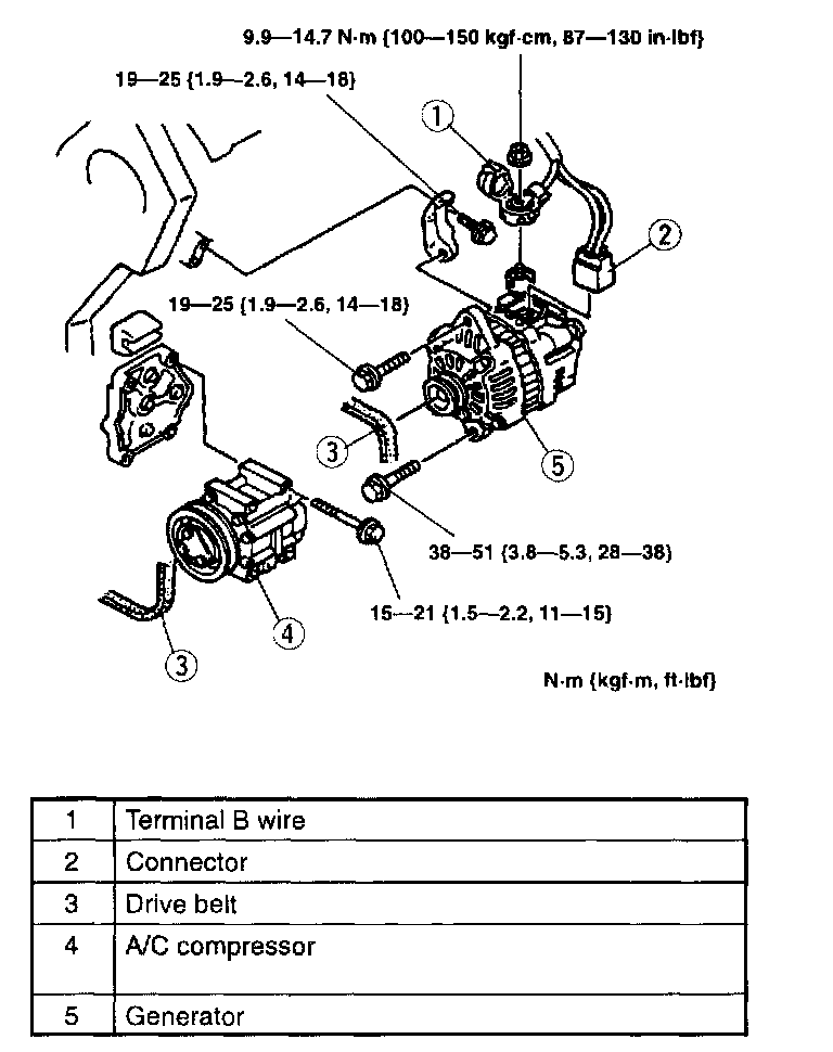 WARNING: When the battery cables are connected, touching the vehicle body with generator terminal B will generate sparks. This can cause personal injury, fire, and damage to the electrical components. Always disconnect the battery before performing the following operation.1. Disconnect the negative battery cable.