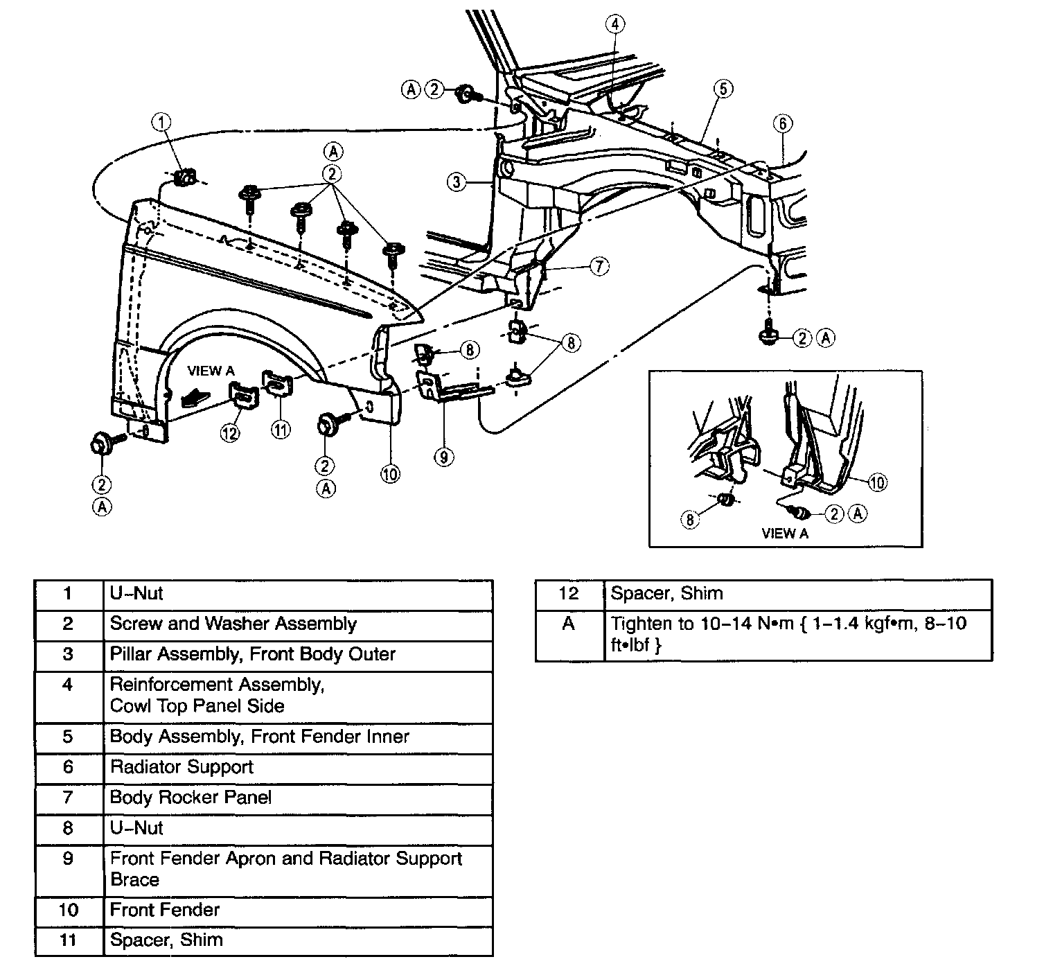 Tightening torque: 10-14 N.m { 102-143 kgf.cm , 8-10 ft.lbf }