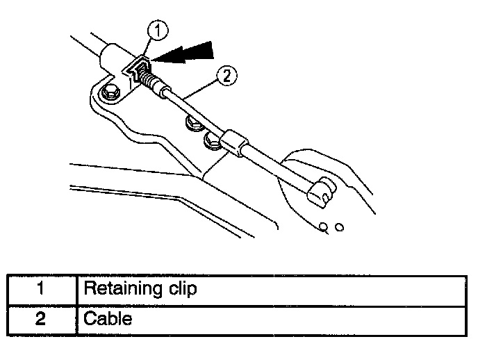 1. Remove retaining clip from cable at accelerator cable bracket.