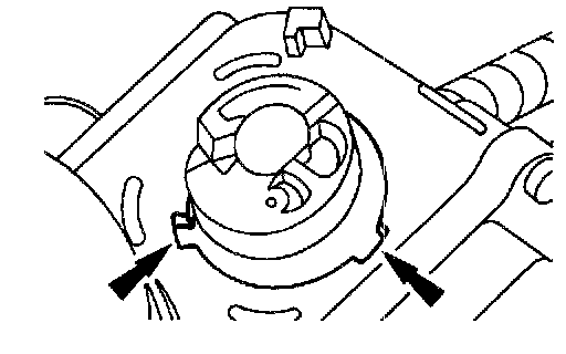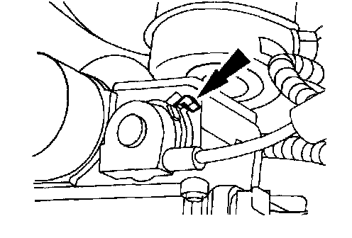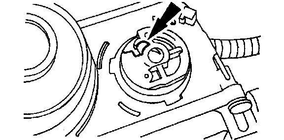 - Press the cruise control actuator locking clip inward and twist the actuator counterclockwise.