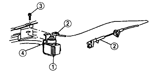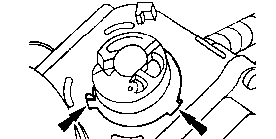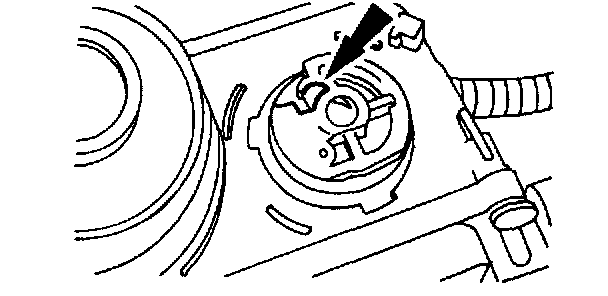 1. Depress the cruise control actuator cable cap tab inward and twist the actuator cap counterclockwise to remove.