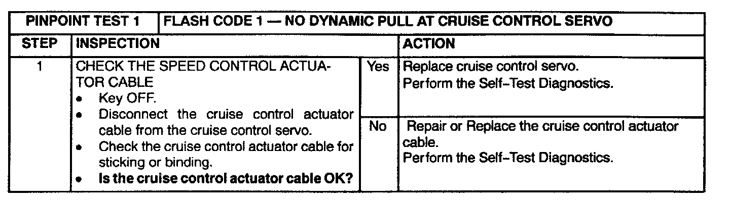 Pinpoint Test 1: Flash Code 1/No Pull at Cruise Control Servo