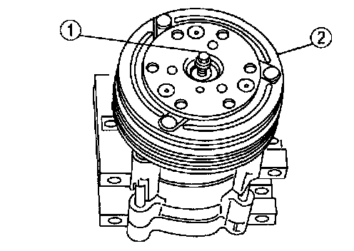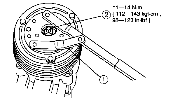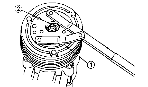 1. Thread an 8 x 1.25 mm bolt into the A/C clutch to force it from the compressor shaft.