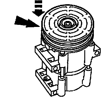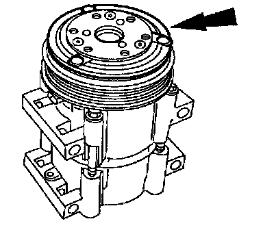 1. Place the A/C clutch field coil on the A/C compressor with the A/C clutch field coil electrical connector properly positioned.
