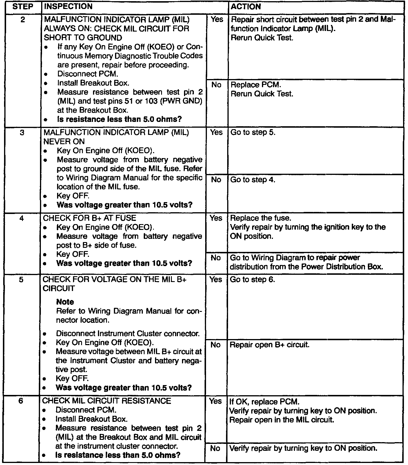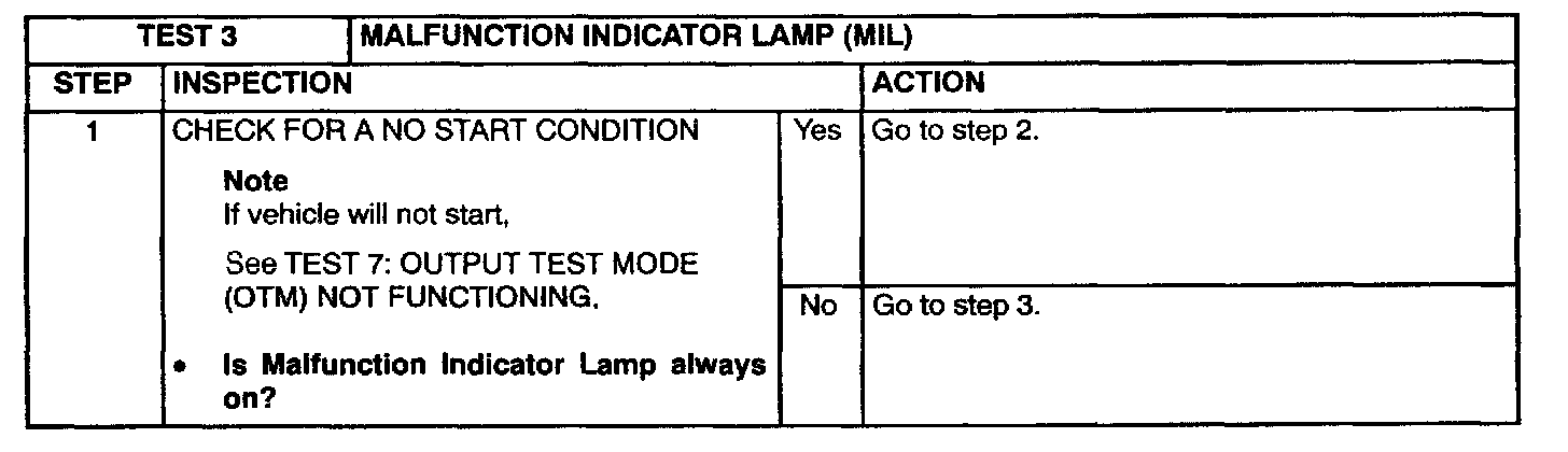 Malfunction Indicator Lamp: Testing and Inspection