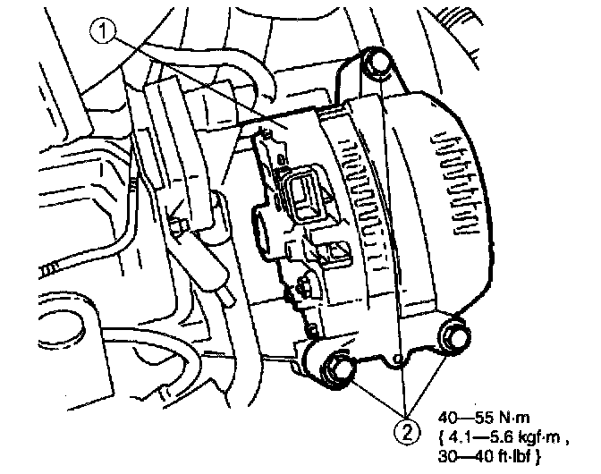 2. Remove the generator B+ cable nut and washer assembly.