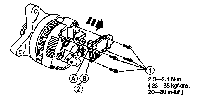 2. Install the generator brush and terminal holder and the voltage regulator assembly.