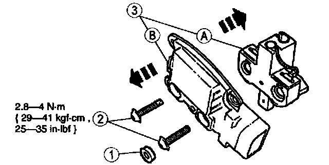 3. Separate the (A) generator brush and terminal holder from the (B) voltage regulator.