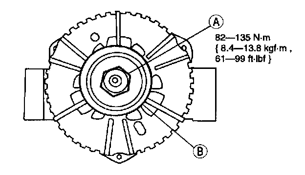 3. Remove the (A) nut and the (B) generator pulley.