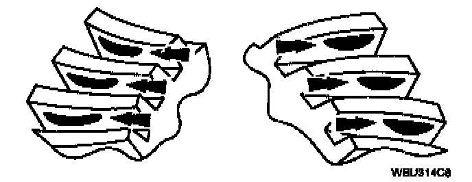 3. Certain types of gear tooth contact patterns on the ring gear indicate incorrect adjustment. Incorrect adjustment can be corrected by readjusting the ring gear or the pinion.