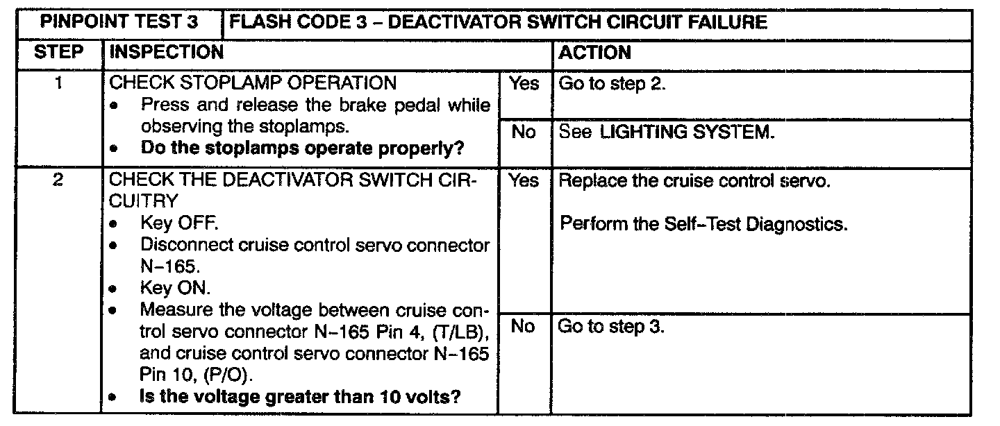 PINPOINT TEST 3: FLASH CODE 3-DEACTIVATOR SWITCH CIRCUIT FAILURE