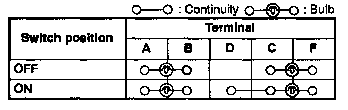 Check for continuity between the cruise control main switch terminals by using an ohmmeter.