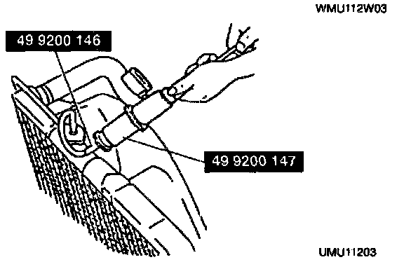 3. Connect a radiator cap tester and the SST to the radiator filler neck.