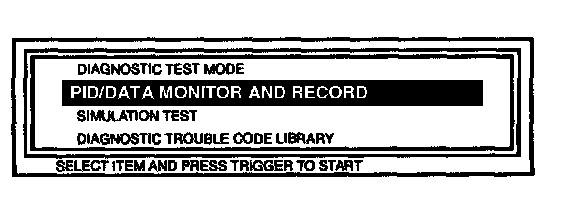 2. Select the "PID/DATA MONITOR AND RECORD" function on the NGS tester display.