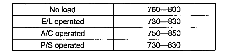 NOTE: Excludes temporary idle speed drop just after the electrical loads are turned on.