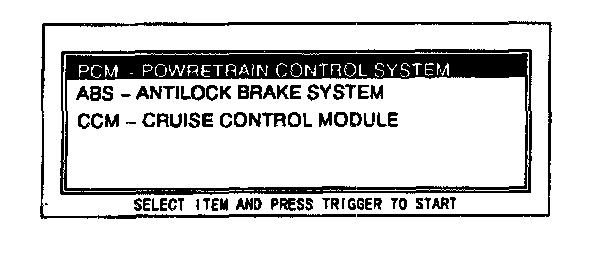 2. Select, "PCM-POWERTRAIN CONTROL MODULE" and press the TRIGGER.
