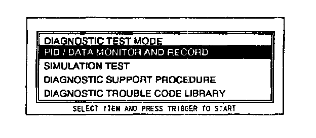 3. Select "PID/DATA MONITOR AND RECORD" and press the TRIGGER.