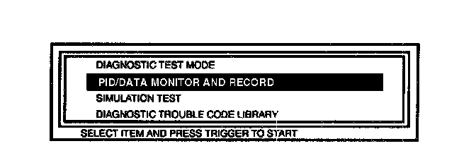 2. Referring to the NGS tester operational manual, select the "PID/DATA MONITOR AND RECORD" function.