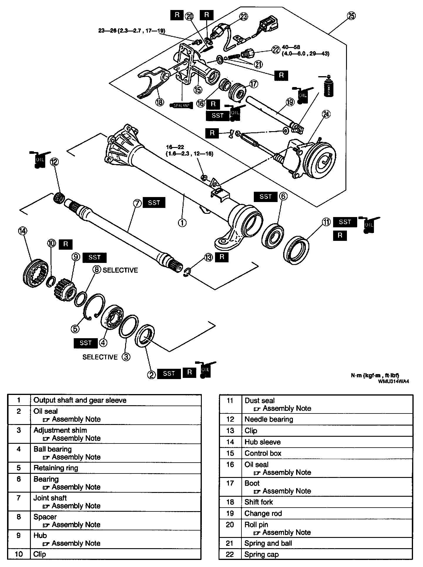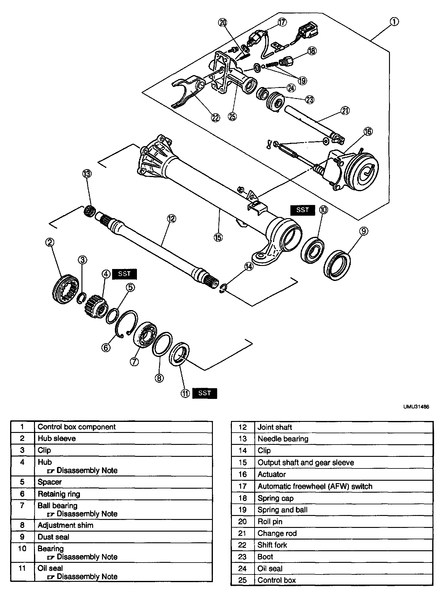 AUTOMATIC FREEWHEEL UNIT DISASSEMBLY- Disassemble in the order indicated in the table.