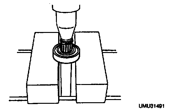 1. Install the spacer removed during disassembly and the hub by using a suitable pipe and the SST.