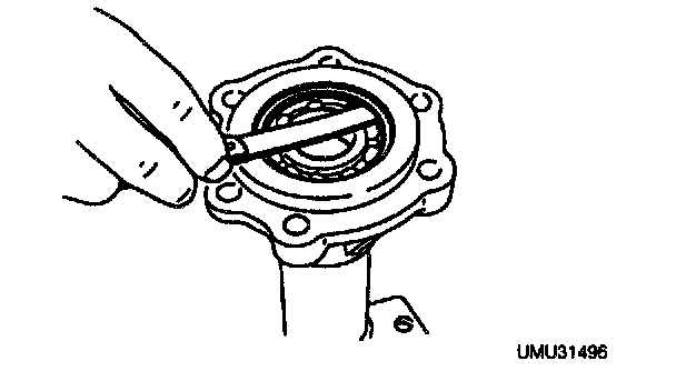 1. Set the removed shim(s) into the housing and install the ball bearing by using the SST