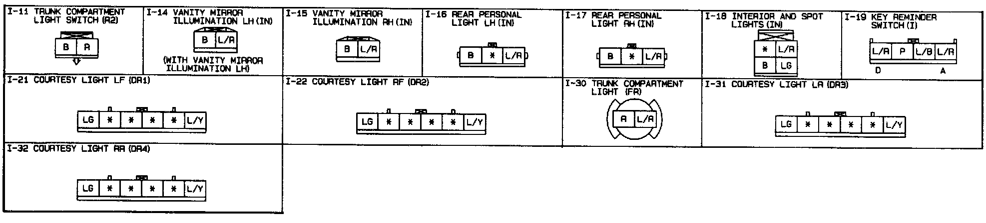 Vanity Mirror Illuminations, Interior Light, Courtesy Lights, Rear Personal Lights, Spot Lights, Trunk Compartment Light-Connectors: