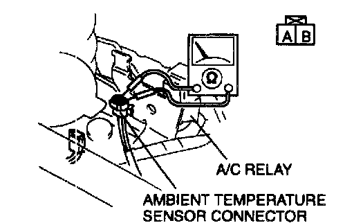 3. Measure the resistance between terminals A and B of the ambient temperature sensor connector (female).