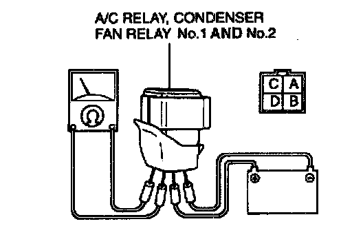 2. Check for no continuity between terminals C and D of the relay connector (male).