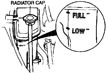 NOTE: The distance between the FULL and LOW marks on the radiator reservoir represents 0.4 L (0.4 Imp qt).