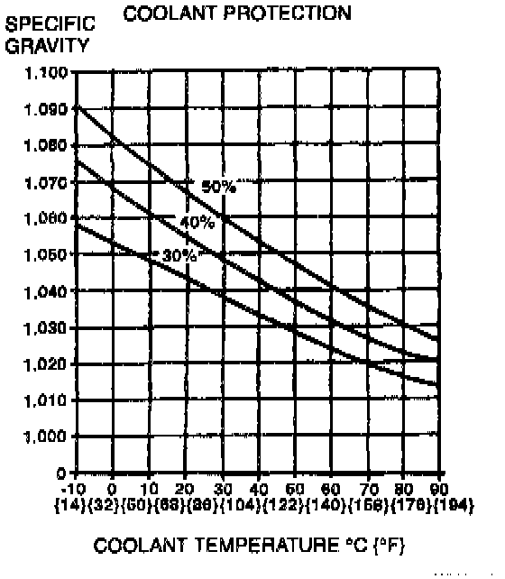 1. Measure the coolant temperature and specific gravity with a thermometer and a hydrometer.