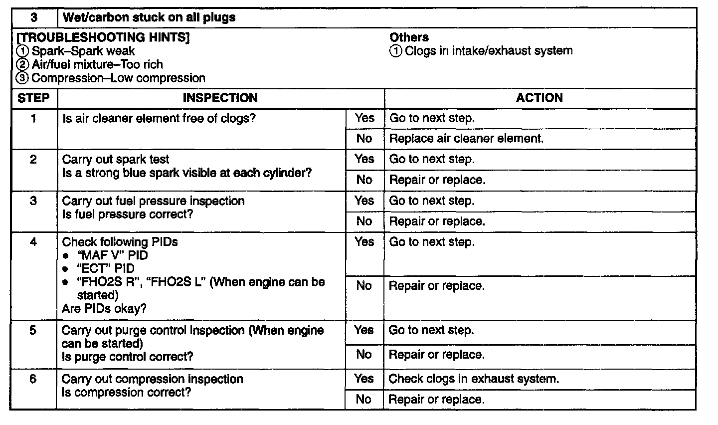 PURPOSEBy checking condition of the spark plugs, judgement whether problem is related to a specific cylinder or all cylinders is possible.