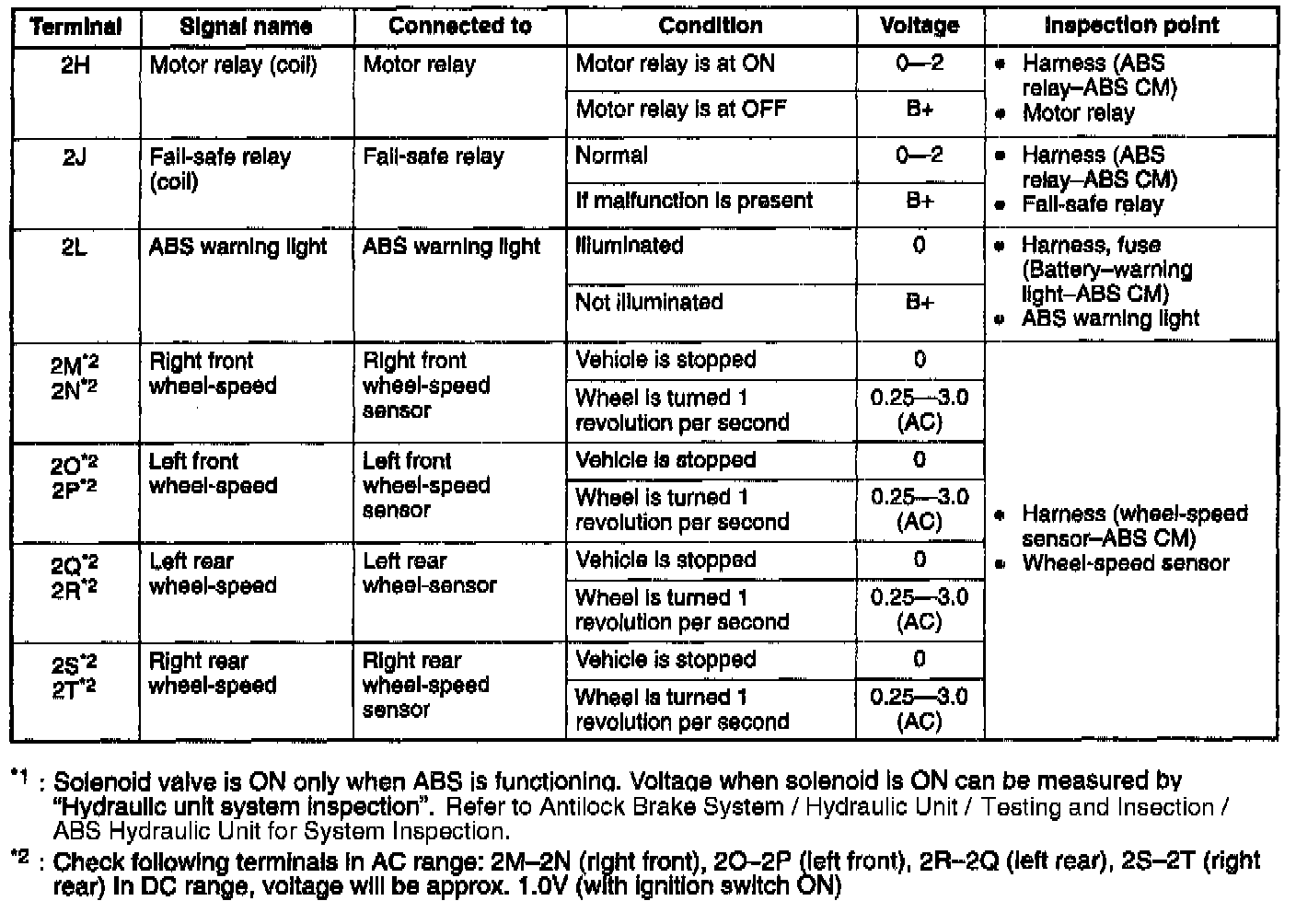 ^ For vehicles with TCS refer to Traction Control System / Traction Control Module / Testing and Inspection / ABS/TCS Control Module Inspection.