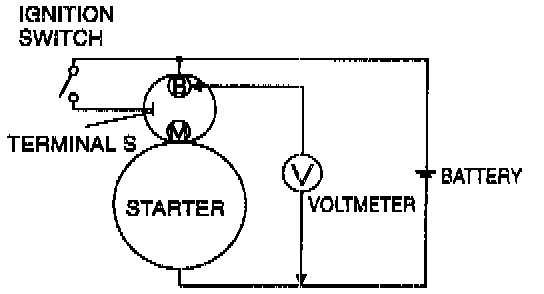 3. If the starter does not turn, measure the voltage between terminals S and B by using a voltmeter.