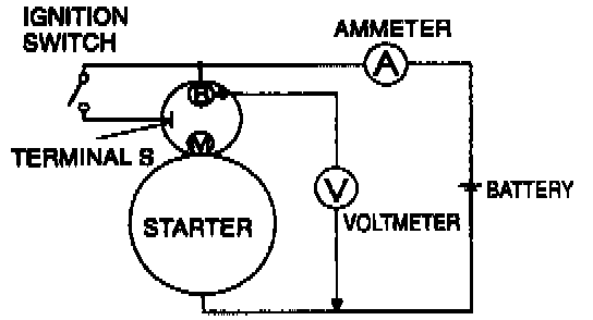 1. Connect the starter, battery, voltmeter and ammeter as shown in the figure.