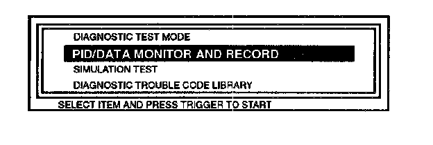 3. Select the "PID/DATA MONITOR AND RECORD" function and press TRIGGER.