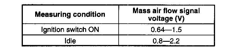 6. It there is correct the terminal voltage and harness continuity, replace the mass airflow sensor.