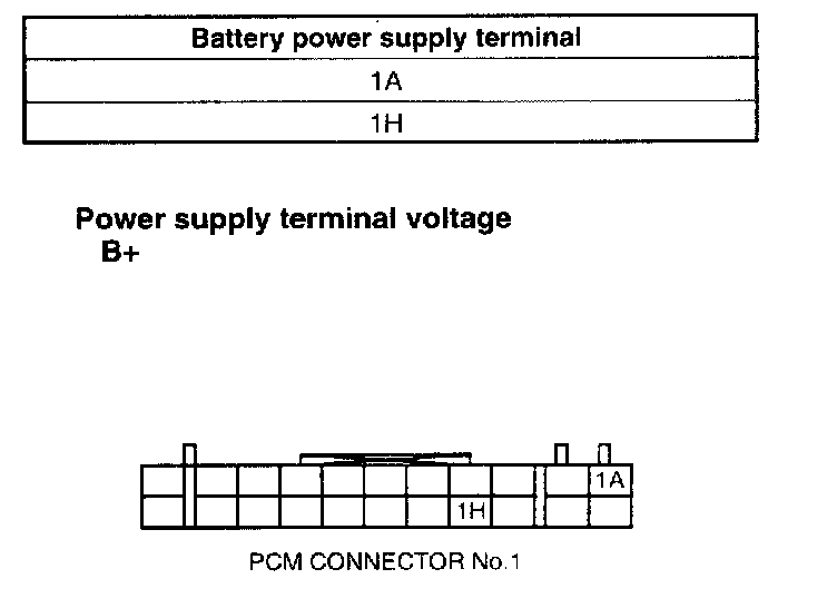 3. Measure the voltage between the PCM battery power supply terminal connectors and body ground by using a voltmeter.