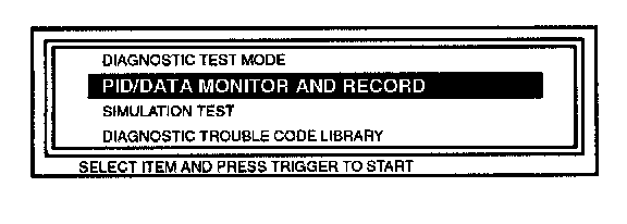 2. Select the "PID/DATA MONITOR AND RECORD" functioned press TRIGGER.