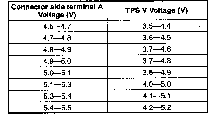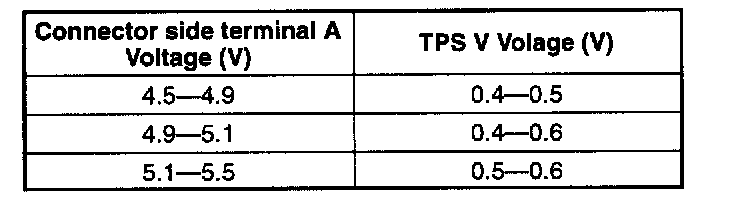 8. Fully open the throttle valve and verify that the voltage is within the specification.